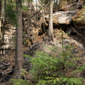 nbank, felsblock, felsen … enturm_felsblock_baumstamm